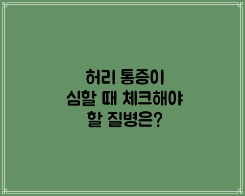 현대인에게 흔히 발생하는 허리 통증은 일상생활의 불편함을 넘어, 심각한 질병의 신호일 수 있습니다. 특히 허리 통증이 반복적으로 발생하거나, 일상생활에 지장을 줄 정도로 심할 때에는 단순 근육통이 아닌 다양한 허리 관련 질병을 의심해볼 필요가 있습니다. 이번 글에서는 허리 통증이 심할 때 반드시 체크해야 할 주요 질병과 그 증상, 그리고 예방 방법에 대해 전문적으로 안내해드리겠습니다.